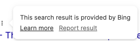 Please bear in mind that Ecosia may still use other providers due to availability. You can check the source of a result by clicking on the 3 dots beside the result.