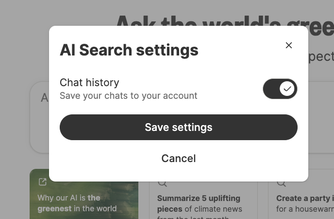 We are progressively integrating AI Chat with Ecosia accounts to make the experience more consistent across devices, while maintaining strong privacy standards.