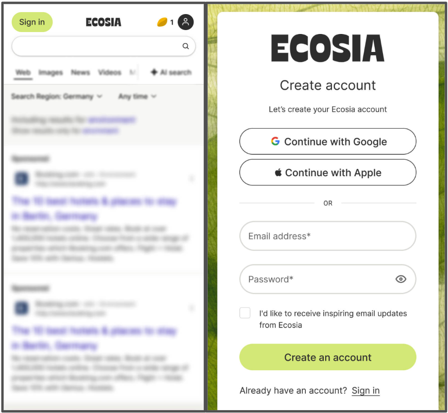 Creating an Ecosia account is optional, but it unlocks a few important things: