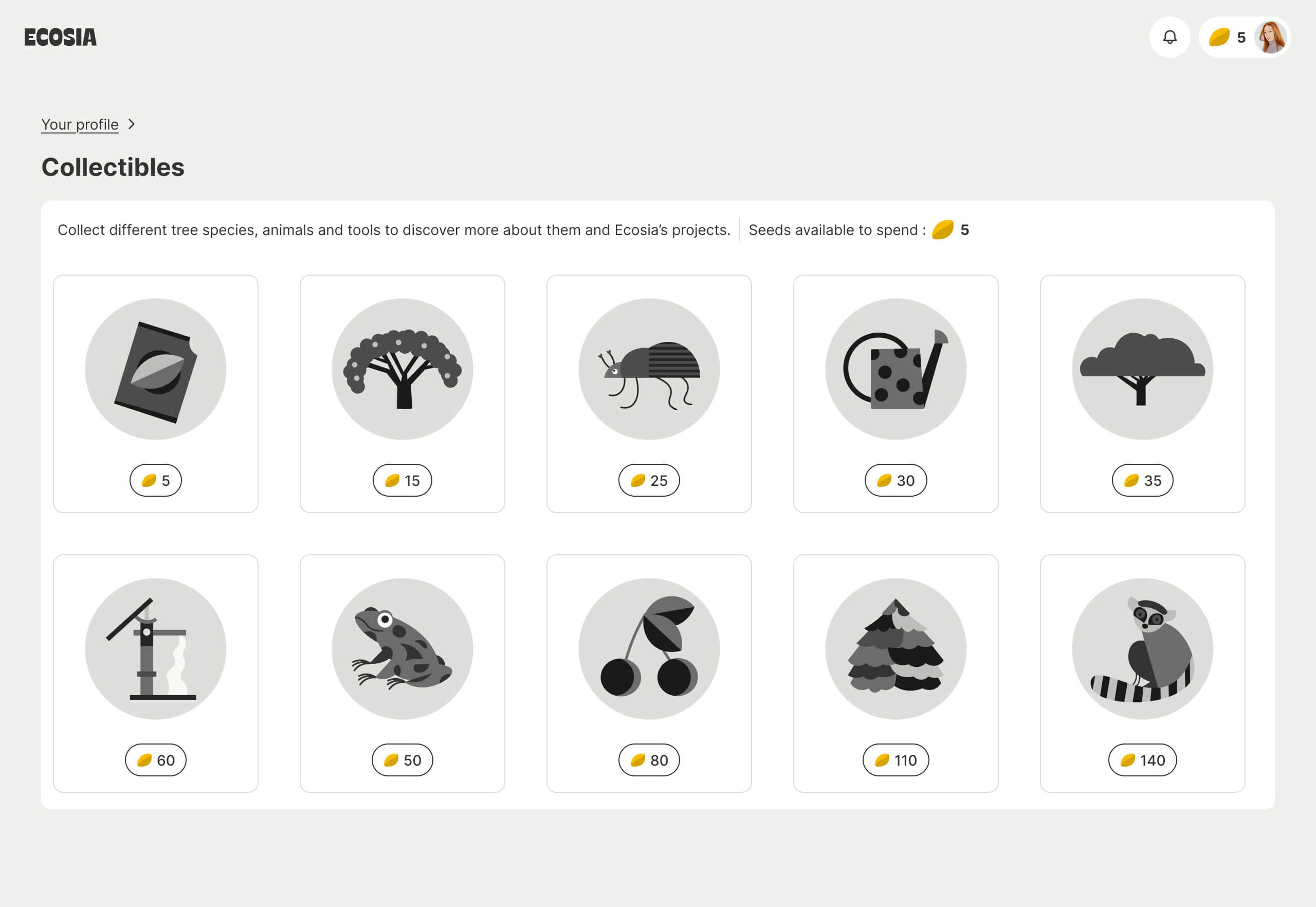Collectibles are digital items you can unlock and keep as part of your Ecosia account.